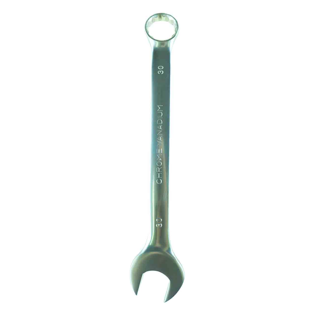 Двухсторонний ключ 30 мм выполнен из прочной CRV стали с матовым антибликовым хромовым покрытием. Благодаря пустотелости ручки осуществляется надежный захват и высокий крутящий момент. Специальная маркировка позволяет быстро определить размер.