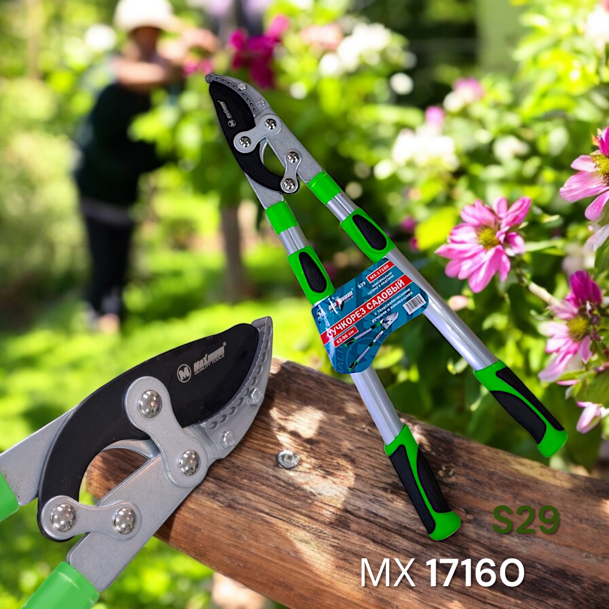 Кусторез с наковальней и телескопическими прорезиненными рукоятками используется для обрезки толстых веток толщиной до 6 см. Рычажный надежный механизм создан для быстрой и комфортной работы.Тефлоновое защитное покрытие лезвия из углеродистлй стали SK5 упрощает очистку инструмента. Рычажный механизм и лёгкая и конструкция помогает прилагать меньше физических усилий при обрезке толстых сучков. Рабочая часть сучкореза из стали SK5 покрыта тефлоном и имеет длину 90 мм.
