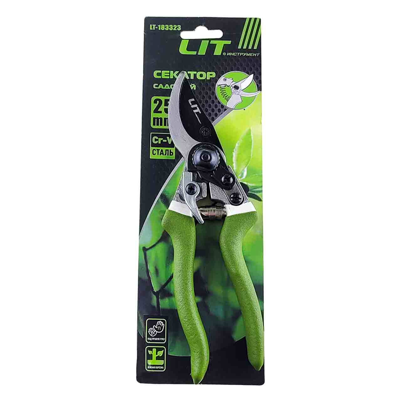 Секатор для обрезки веток, кустарников или деревьев от "LIT" изготовлен с серповидной остро заточенной рабочей частью. Нижняя стальная часть служит опорой. Благодаря высокоуглеродистой стали с антикоррозийным покрытием срез получается ровный и чистый, остаток побега остается неповрежденным.