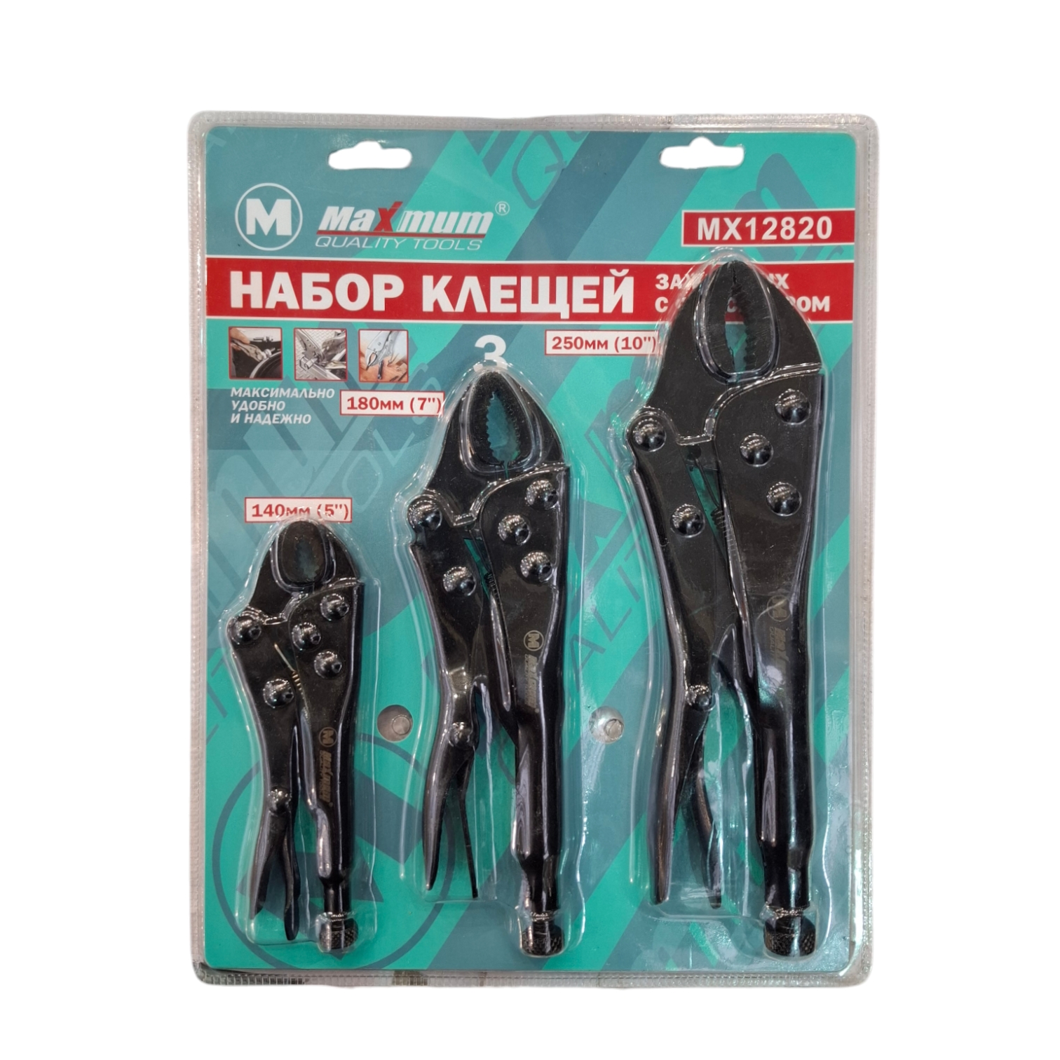 Набор клещей зажимных включает в себя три инструмента: