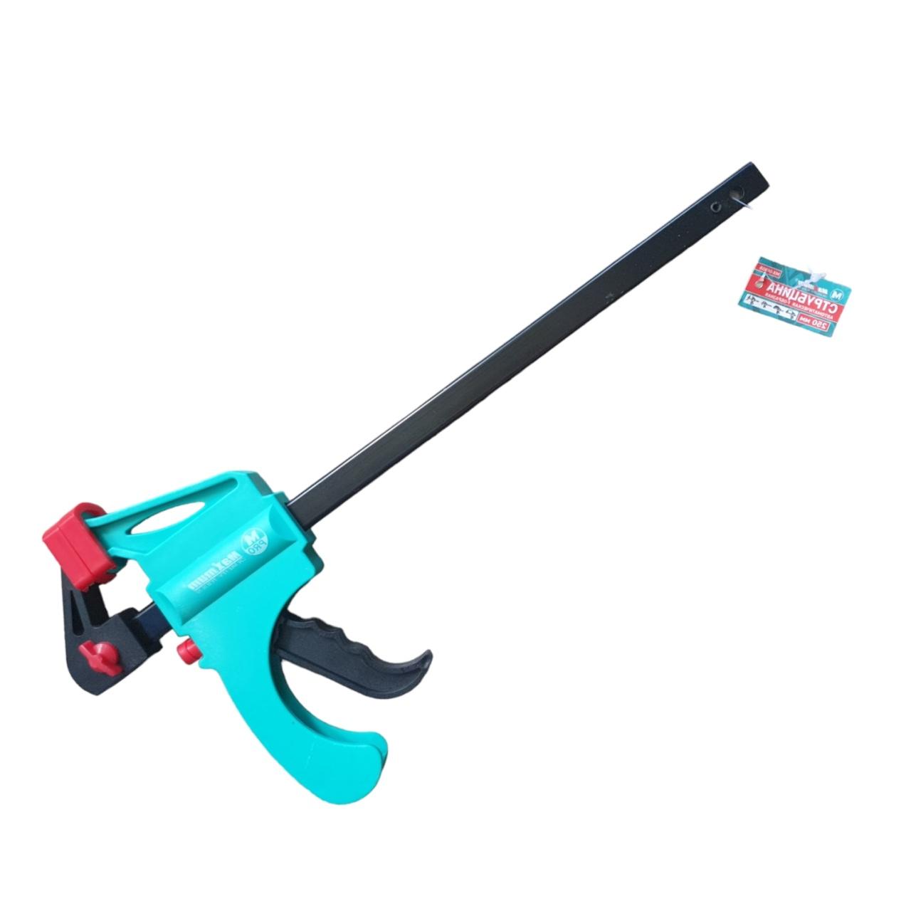 Струбцина автоматическая используется для столярных и ремонтных работ. Универсальное приспособление, которое способно служить опорой или скрепляющим инструментом. Пластиковая рукоятка пистолетного типа гарантирует удобное и точное использование.