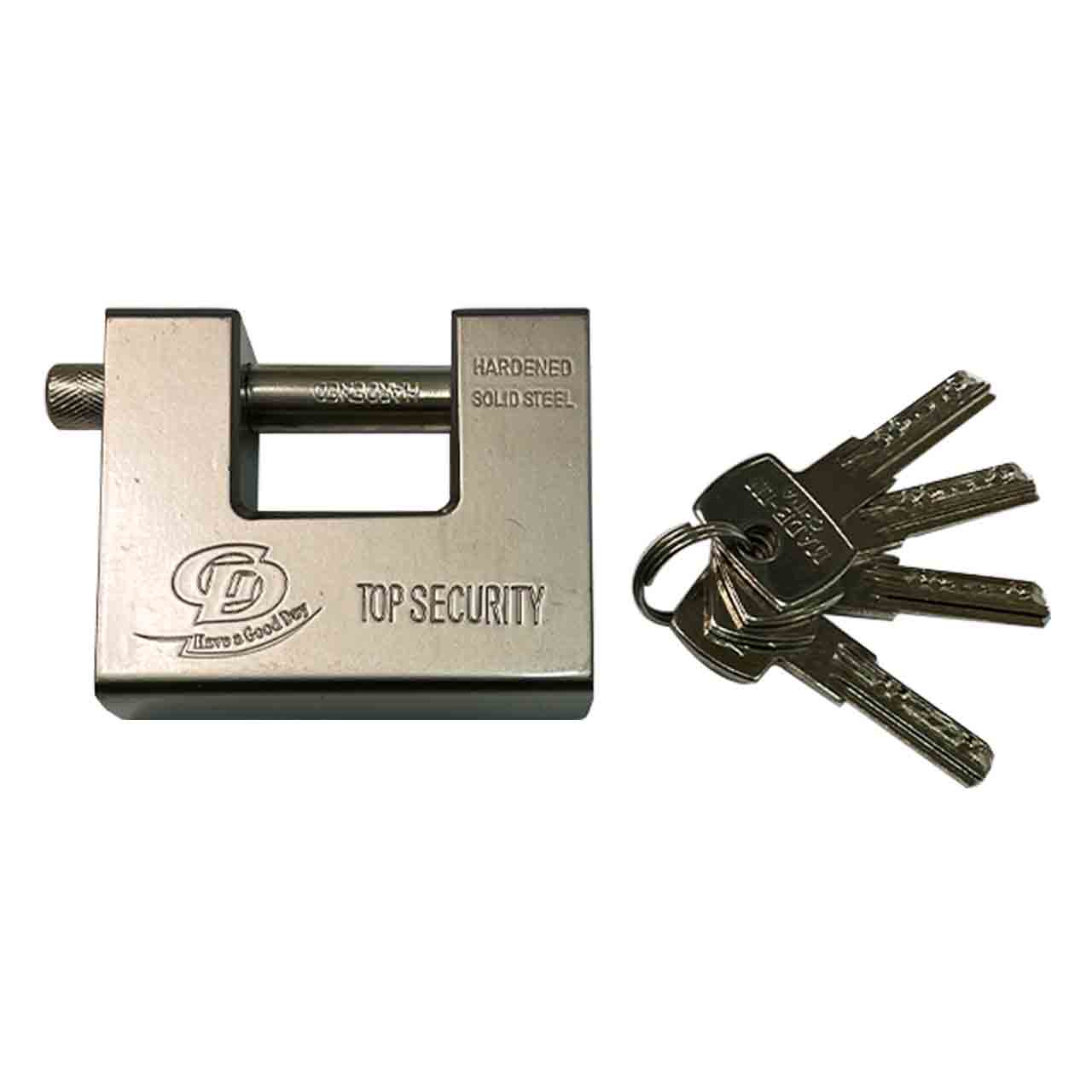 Замок имеет прямую дужку - ригель из закаленной стали, который при закрытии углубляется в корпус.