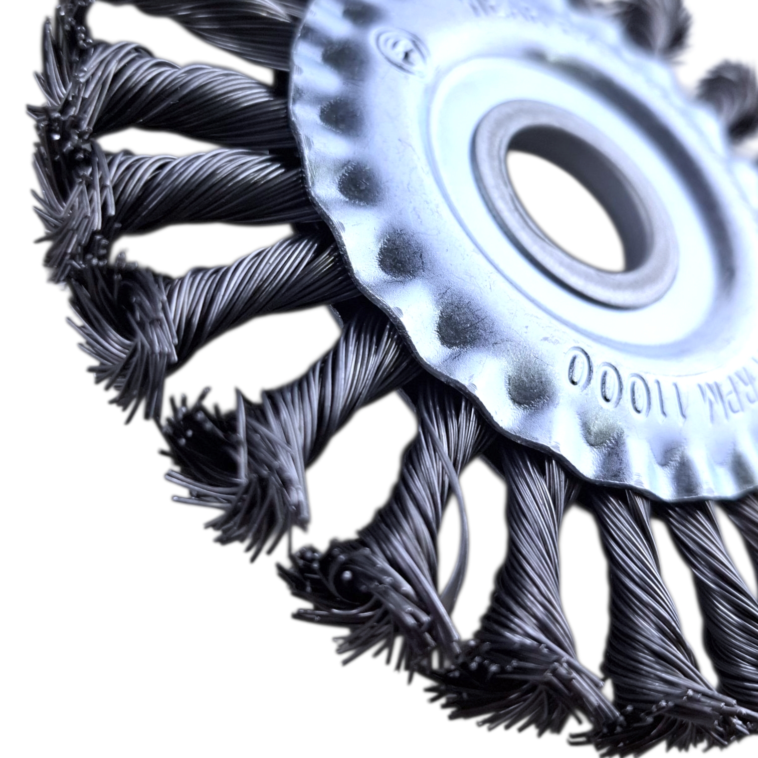 Витая щетина обеспечивает мощное и агрессивное воздействие на поверхность.