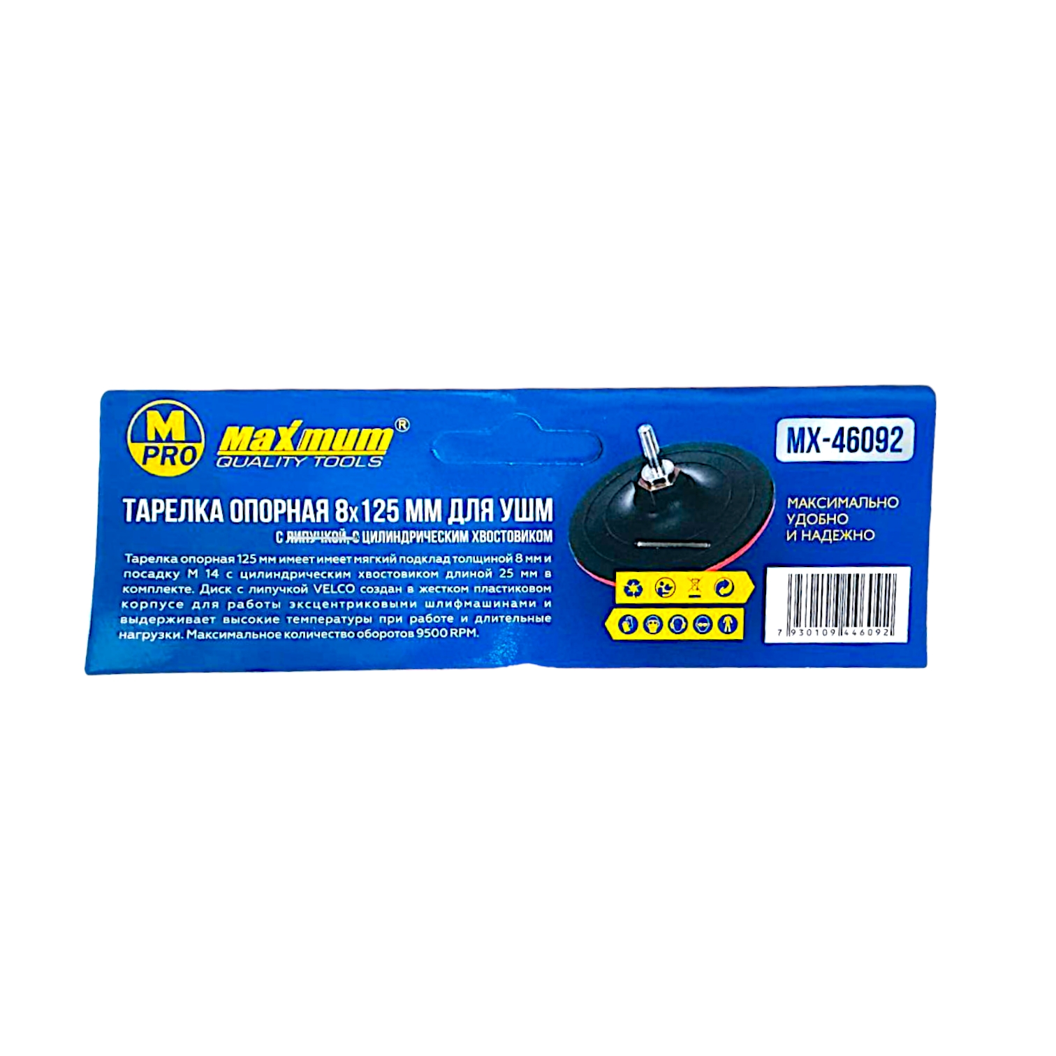 Тарелка опорная 3×125 мм для УШМ, с липучкой, цилиндрический хвостовик, "MAXIMUM" (Максимум)MX 46085